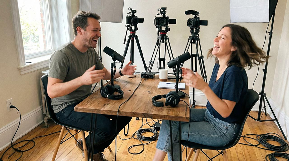 Video podcasts maximize reach—your content lives on both audio platforms (Spotify, Apple) and video platforms (YouTube, social), growing your audience faster.